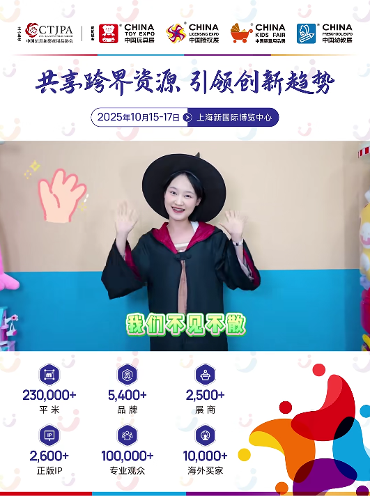 2025年10月15日至17日,由中国玩具和婴童用品协会(简称中国玩协)主办的CTE中国玩具展&潮玩展、CLE中国授权展、CKE中国婴童用品展、CPE中国幼教展(简称中国玩协四展)将于上海新国际博览中心举办。届时将同步举办第二十届全球品牌授权趋势大会、第七届CTE全球潮流和收藏玩具趋势大会暨2026潮流新品发布会、2025出海趋势大会、2025CTE企业首发新品发布会等超200场会议活动。此次展会将汇集全球40多个国家和地区以及30大玩具、婴童用品主产区2500+展商携5400+品牌、2600+全球正版IP参展。