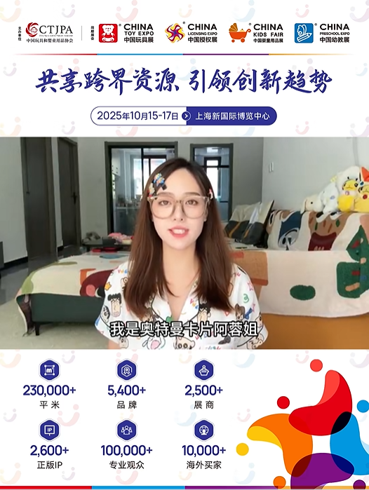 2025年10月15日至17日,由中国玩具和婴童用品协会(简称中国玩协)主办的CTE中国玩具展&潮玩展、CLE中国授权展、CKE中国婴童用品展、CPE中国幼教展(简称中国玩协四展)将于上海新国际博览中心举办。届时将同步举办第二十届全球品牌授权趋势大会、第七届CTE全球潮流和收藏玩具趋势大会暨2026潮流新品发布会、2025出海趋势大会、2025CTE企业首发新品发布会等超200场会议活动。此次展会将汇集全球41个国家和地区以及30大玩具、婴童用品主产区2629家展商携5426个品牌、2600+全球正版IP参展。