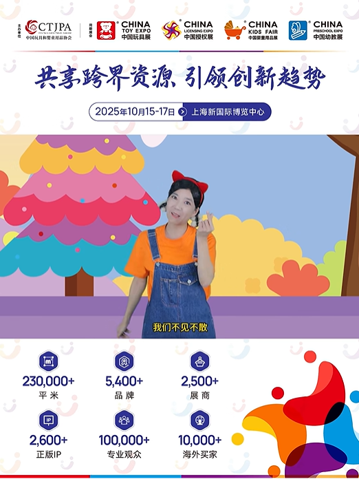 2025年10月15日至17日,由中国玩具和婴童用品协会(简称中国玩协)主办的CTE中国玩具展&潮玩展、CLE中国授权展、CKE中国婴童用品展、CPE中国幼教展(简称中国玩协四展)将于上海新国际博览中心举办。届时将同步举办第二十届全球品牌授权趋势大会、第七届CTE全球潮流和收藏玩具趋势大会暨2026潮流新品发布会、2025出海趋势大会、2025CTE企业首发新品发布会等超200场会议活动。此次展会将汇集全球41个国家和地区以及30大玩具、婴童用品主产区2629家展商携5426个品牌、2600+全球正版IP参展。