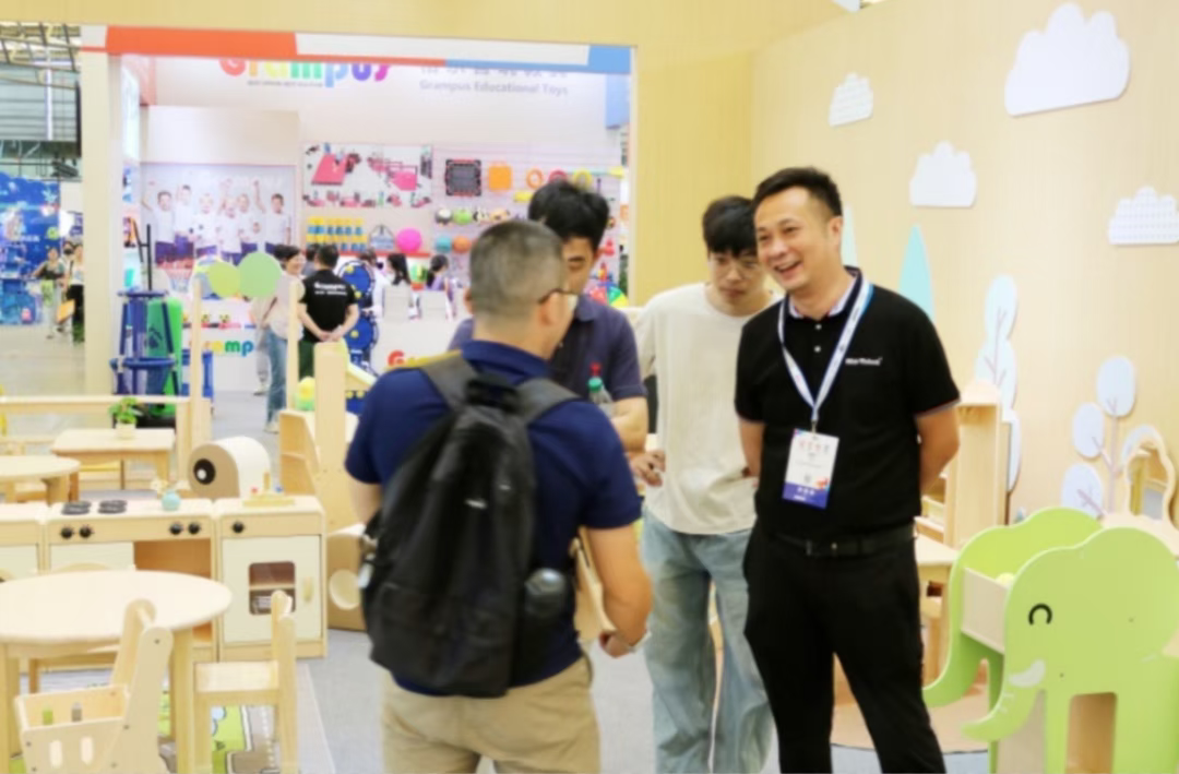 展会期间,上海凯思泰乐的展馆始终人气高涨。通过与来自全国各地的教育工作者、经销商进行了深入交流,共同探讨托育中心运营中的实际问题、幼儿园户外场地升级规划等行业关切话题。从一线园长的“场地改造困惑”到经销商的“产品落地需求”,从托育机构对材质安全性的专业考问到专业观众对美学细节的探讨,每一次交流都成为企业优化产品的“灵感源”。这些宝贵的交流不仅增进了托幼教领域的相互了解,更为上海凯思泰乐未来的产品研发和市场拓展提供了重要参考。